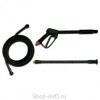 - Пистолет с защитой от перекручивания шланга.- Шланг высокого давления с винтовыми соединениями 10 м.