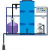 Из грязеотстойника вода подается погружным - фекальным насосом (входит в комплектацию) сначала в песочно-гравийную фильтрующую колонну, где происходит очистка сточных вод от механических примесей, а затем через картриджный фильтр (опция), где производится очистка от нефтепродуктов. Далее вода поступает в накопительную емкость, предназначенную для повторного использования. Для уничтожения бактерий в воде и избежания неприятного запаха, в системе АРОС 1Д предусмотрен дозирующий насос (опция), с помощью которого обеззараживающая химия дозируется в автоматическом режиме. Контроль уровня воды в резервуаре и включение насосов повышения давления производится с помощью системы автоматики. Погружной - фекальный насос служит для подачи воды из грязеотстойника в АРОС 1+Д+К. Включение насосов производится по команде от системы управления, расположенной в распределительном шкафу. В качестве датчика сухого хода и контроля за уровнем используется поплавковые выключатели.