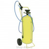 Пеногенератор работает от сжатого воздуха и подключается к пневмосети (к компрессору от 4 до 8 атм.). Благодаря тонкой и длинной трубке пенообразующего пистолета он позволяет наносить моющие и дезинфицирующие растворы в виде пены на любые поверхности, в том числе и на труднодоступные участки. Максимальная высота нанесения пены до 6 метров.