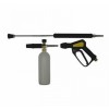 Пенокомплект ECOLINE (KW, ниппель, муфта-байонет, 250bar), копье L=60cmна бытовой аппарат Bosch (Бош), LS 3 PA для Bosch (Бош), PA1,KARCHER, Portotecnica, ANNOVI. R+M для 250 бар произведена из высококачественных материалов - латуни, пластика и железа, что позволяет использовать пенную насадку бесконтактной мойки как на коммерческих мойках с высокой пропускной способностью на постах мойки так и в бытовом применений, в бытовом применении её функционал расширен с помощью пенной насадки легко производить стирку напольных покрытий, не зря все средства чистки ковров в виде пены. Главными составляющими этой насадки являются: вспенивающий инжектор и сетчатый фильтр (пенная таблетка)