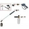Пенный комплект используется для бесконтактной мойки. Пенокомплект обеспечивает дозированное нанесение активной пены(шампуня) на поверхность, а так же быструю смену аксессуаров комплекта между собой. Быстрая смена пенной насадки на струйную трубку для смыва и обратно происходит за счёт байонетных затворов (быстросъемное соединение). Именно БРС соединения позволяют быстро снимать, устанавливать копье пистолета для насоса высокого давления на пенную насадку LS и обратно.