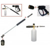 Пенный комплект используется для бесконтактной мойки. Пенокомплект обеспечивает дозированное нанесение активной пены(шампуня) на поверхность, а так же быструю смену аксессуаров комплекта между собой. Быстрая смена пенной насадки на струйную трубку для смыва и обратно происходит за счёт байонетных затворов (быстросъемное соединение). Именно БРС соединения позволяют быстро снимать, устанавливать копье пистолета для насоса высокого давления на пенную насадку LS и обратно.